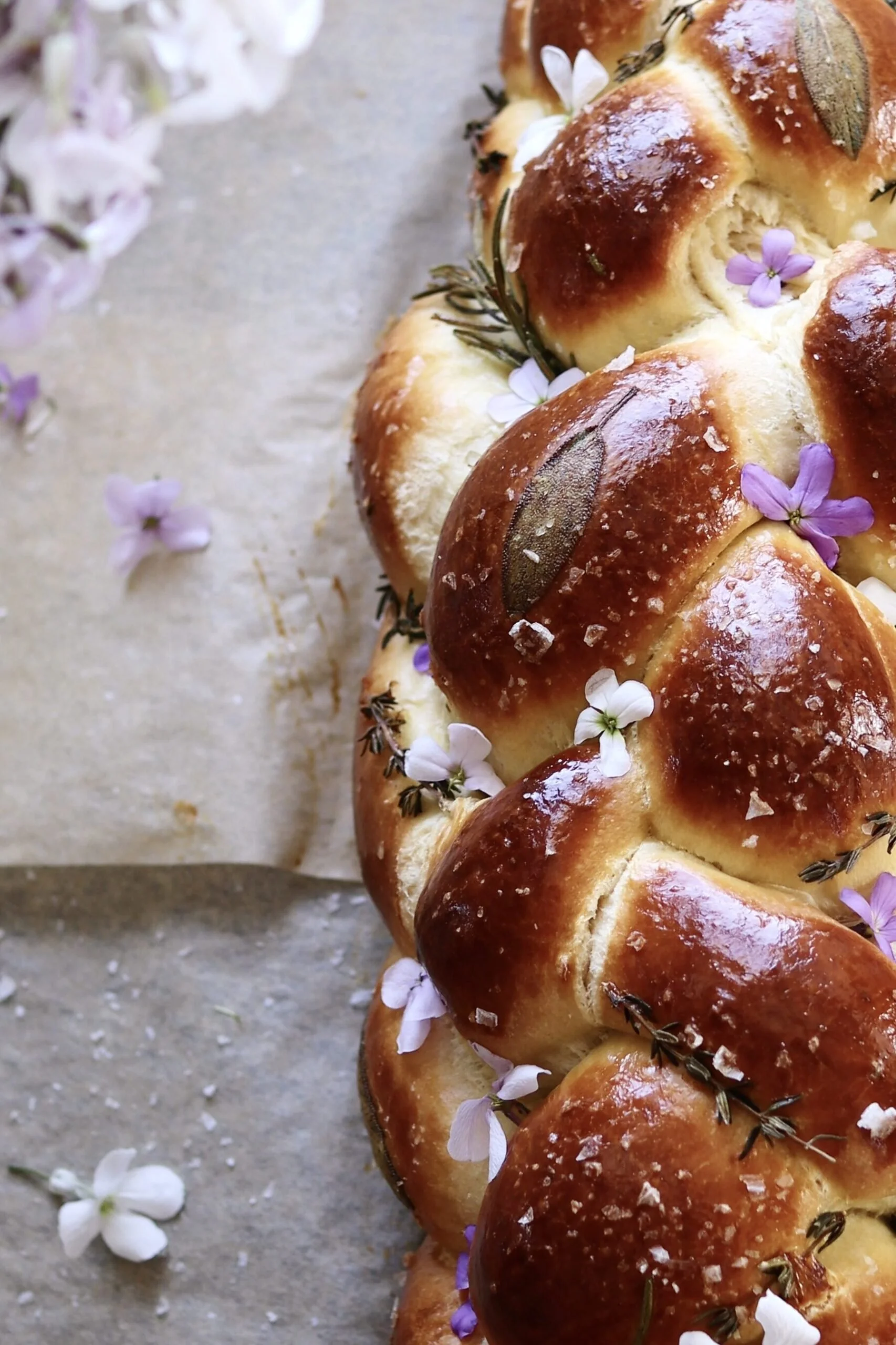 (Also, those little herbs and flowers aren't included in the tutorial—but they're easy enough to add! Just poke/layer on some fresh herbs after the egg wash step, prior to baking. If you want to use edible flowers, they'll need to be added post-baking, just before serving.)